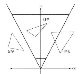 시야 볼륨 외부의 물체를 추려내는 것이 클리핑이다.