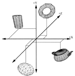 물체의 삼각형 리스트를 정의하는데 이용하는 좌표 시스템.